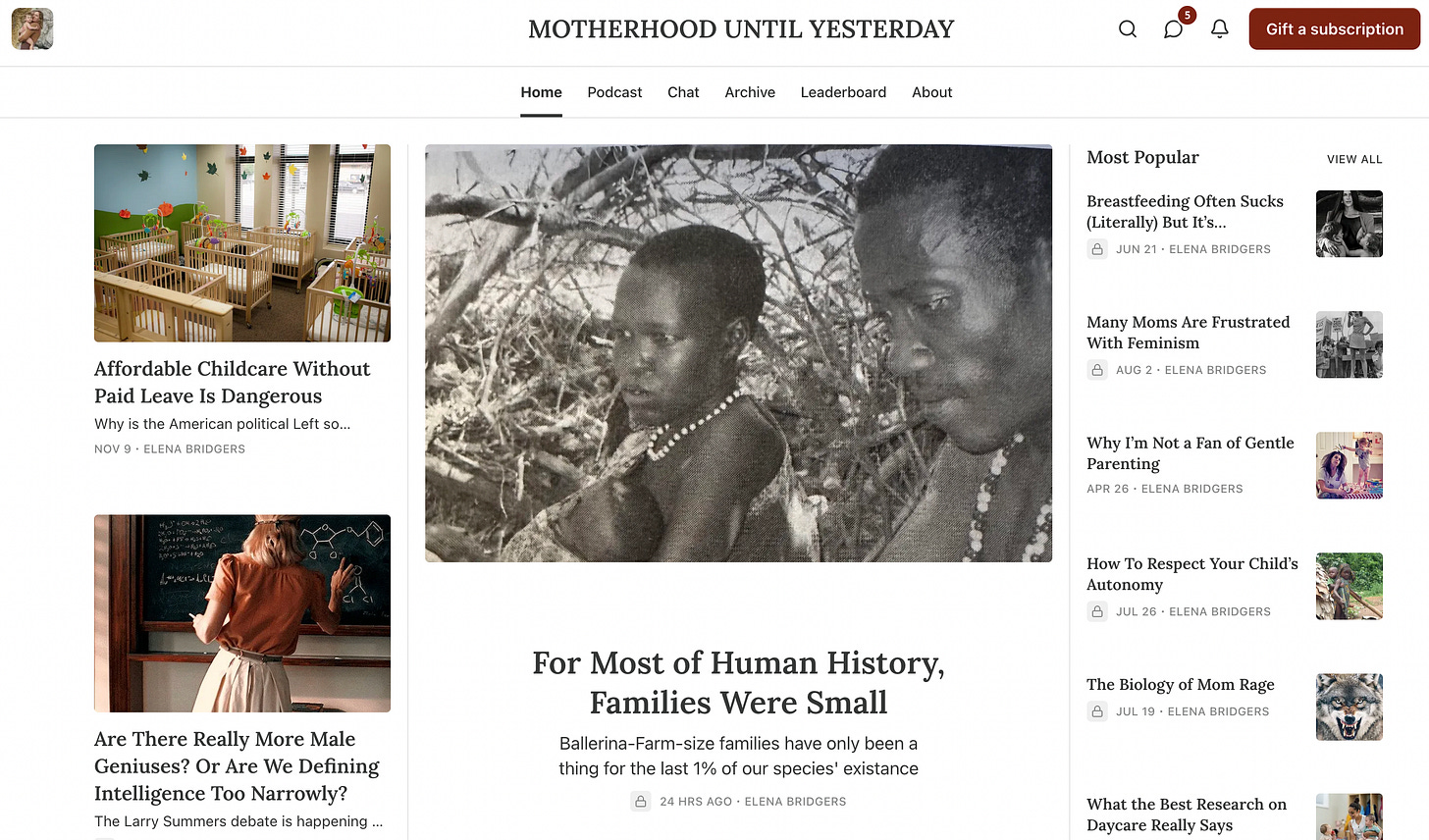 Great let’s get started! Your work sits at a really fascinating crossroads: you take concepts from evolutionary biology and apply them to the everyday realities of motherhood, mental health, and modern culture. Some of your most popular articles are: Why I’m Not A Fan of Gentle Parenting, What the Best Research on Daycare Really Says, How to Actually Increase the Birth Rate. To start things off could you tell us a little of what drew you into that space in the first place? Was there a personal experience, a piece of research, or a moment of friction in your own life that made you think: this is where evolution and lived experience meet, and it needs to be written about?